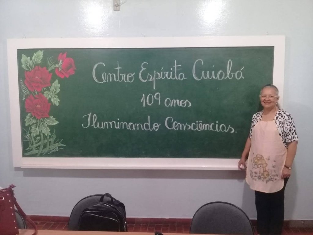 Há 30 anos Zelinda ilustra o quadro do salão do Centro Espírita Cuiabá.