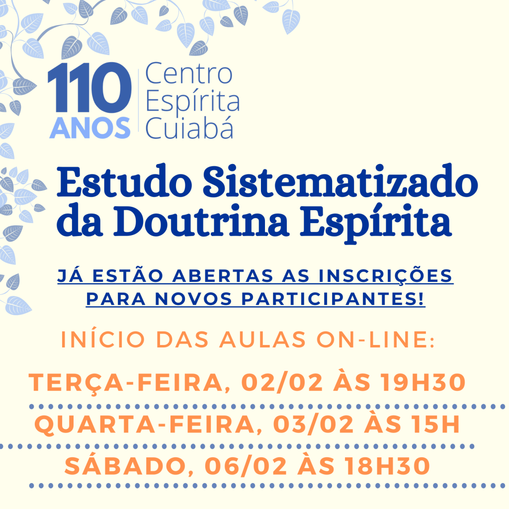 Se você deseja iniciar ou retomar o estudo doutrinário faça aqui a sua inscrição. Devido à pandemia da Covid-19, as aulas continuarão de forma remota em 2021, até a efetivação do processo de vacinação.