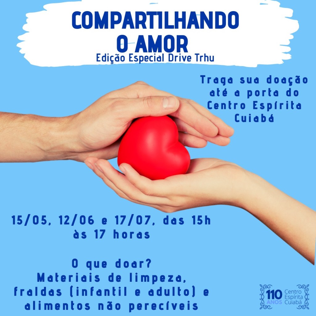 Em mais uma edição especial do Compartilhando o Amor, voluntários estarão arrecadando doações que serão destinadas às famílias e instituições atendidas pelo Centro Espírita Cuiabá através da Coordenadoria de Serviço Assistencial Espírita.