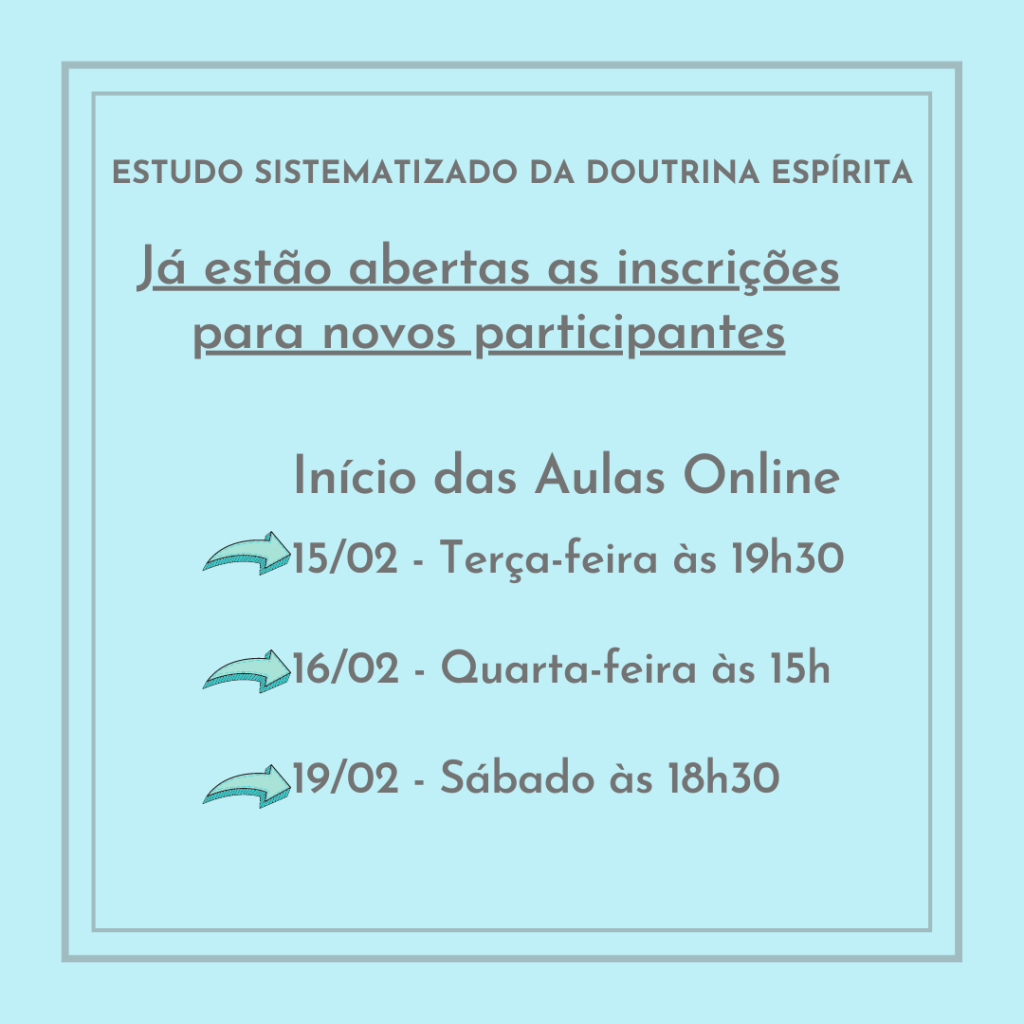 Se você deseja iniciar ou retomar o estudo doutrinário faça aqui a sua inscrição. Devido à pandemia da Covid-19, as aulas dos estudos sistematizado serão, inicialmente, de forma on-line em 2022.