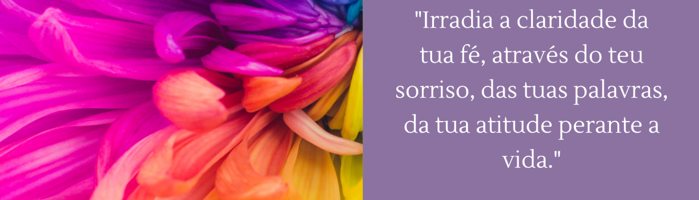 “Irradia a claridade da tua fé, através do teu sorriso, das tuas palavras, da tua atitude perante a vida.