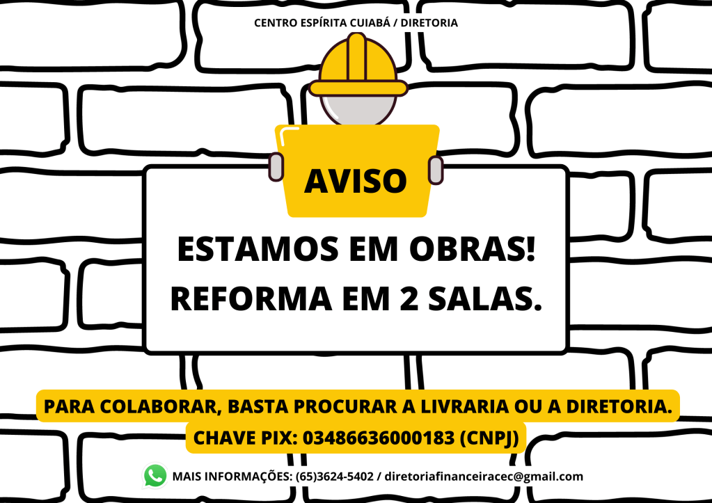 Neste propósito de melhoria contínua, compartilhamos nosso engajamento para viabilizar a conclusão da reforma de mais duas salas em nossa casa espírita.