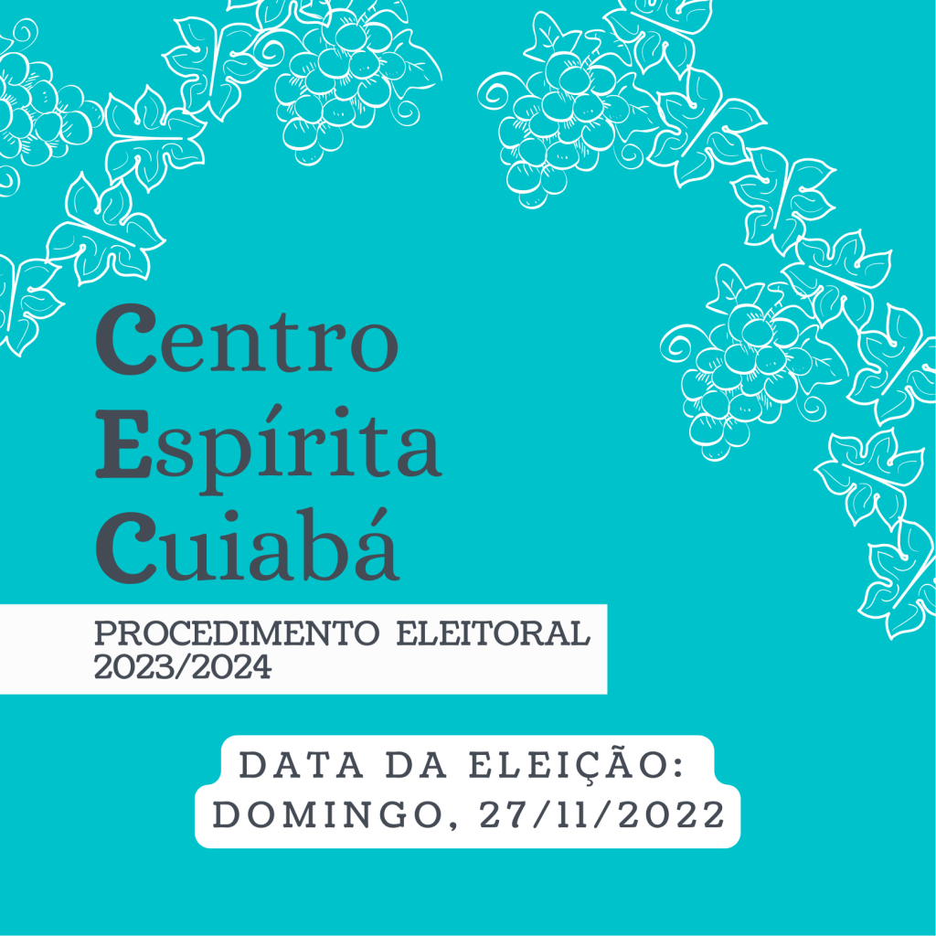No próximo domingo, dia 27/11/2022, acontecem as eleições para a Diretoria Executiva e Conselho Administrativo do Centro Espírita Cuiabá.