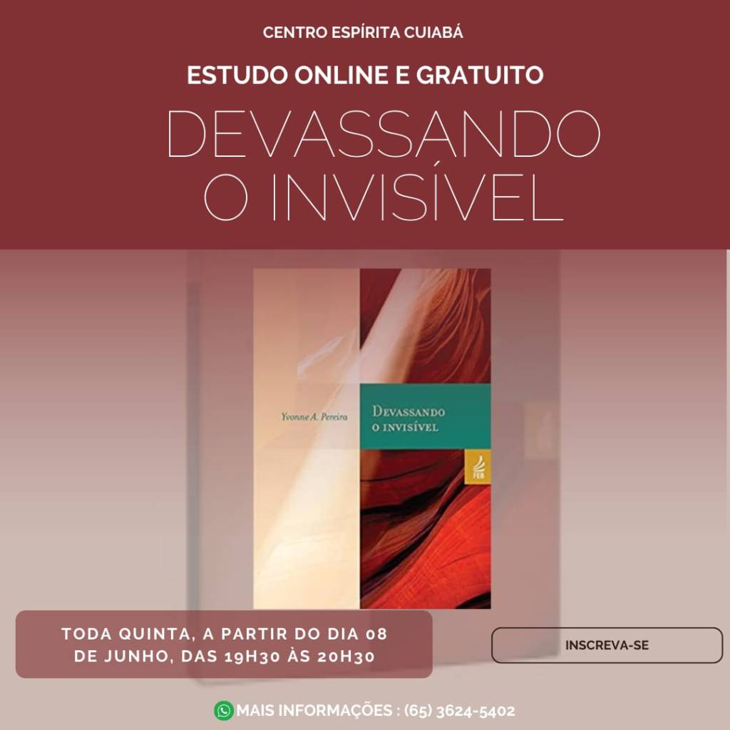 No próximo dia 8 de junho, o Centro Espírita Cuiabá, por meio da Coordenadoria de Doutrina de Estudo, iniciará uma turma de estudo sistematizado online. A obra estudada será “Devassando o Invisível” , de Yvonne Pereira.