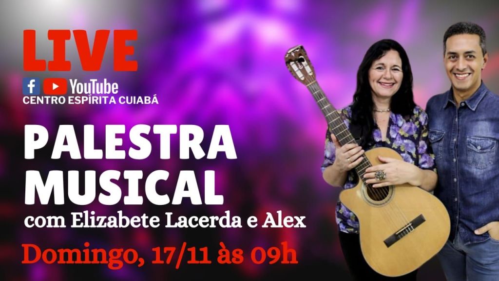 Com ritmos envolventes e suavidade na voz e interpretação musical, Elizabete Lacerda e Alex apresentam uma emocionante palestra musical com mensagens baseadas nos ensinamentos da Doutrina Espírita e no Evangelho de Jesus.