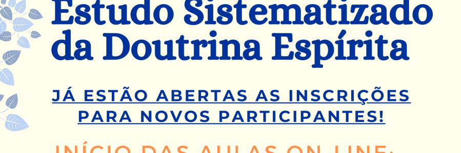 Novos participantes já podem se inscrever. As aulas on-line terão início dia 02/02 (para os estudos de Terça-Feira), dia 03/02 (para os estudos de Quarta-Feira) e dia 06/02 (para os estudos do Sábado).… Leia mais ESTUDOS ESPÍRITAS